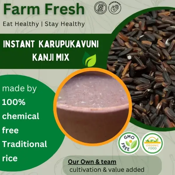 Karuppu Kavuni (black rice) is an ancient Tamil rice, known for its high fibre, antioxidants, and earthy richness. In this spicy kanji mix, the rice is slow-roasted with traditional spices to create a bold, warming drink that fuels the body and calms the gut. Ideal for diabetic diets, post-workout recovery, or even light dinners, this mix is a flavourful way to enjoy the benefits of a forgotten grain.