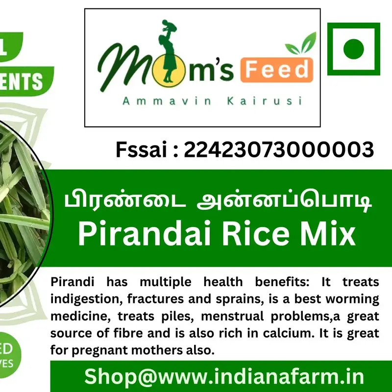 Used in Siddha medicine for centuries, pirandai is known for its anti-inflammatory properties and its ability to strengthen bones, improve gut health, and ease joint pain. In this rice mix, we’ve blended sun-dried pirandai stems with lentils, curry leaves, and spices—resulting in a medicinal yet tasty podi that makes health easy and enjoyable.