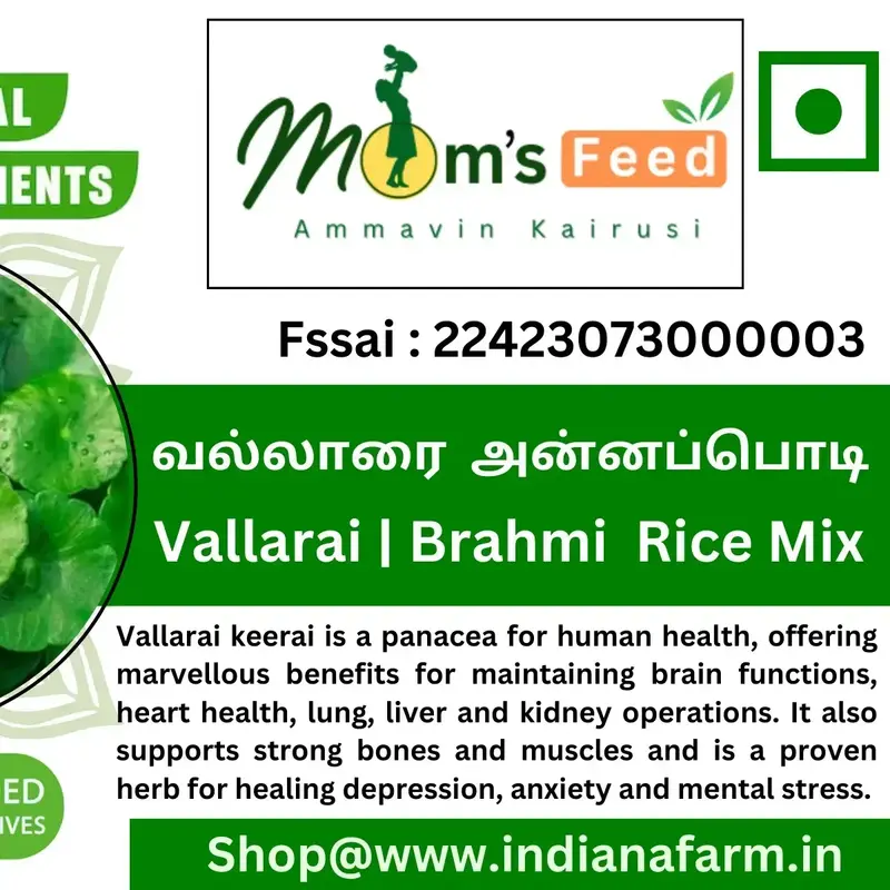 Vallarai (also called Brahmi) is a brain tonic herb that’s deeply respected in Ayurveda and Siddha. This mix brings its benefits into everyday meals by combining it with lentils, chillies, and cumin to create a grounding, nourishing flavour.